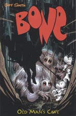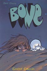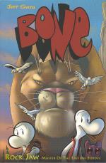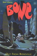 Bone is a comic series by Jeff Smith. The lovable little character, along with his cousins are taken on an adventure that is down right dangerous, all becasue of Phoney Bone's habbit of getting thrown out of their home town, Boneville.